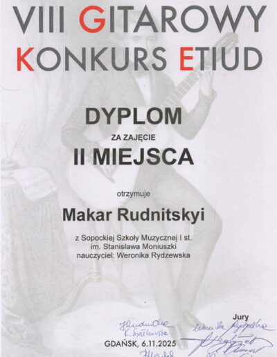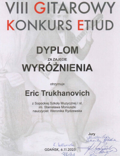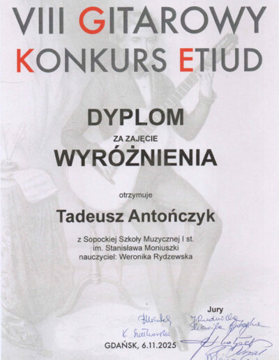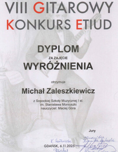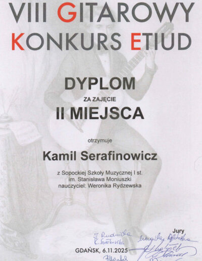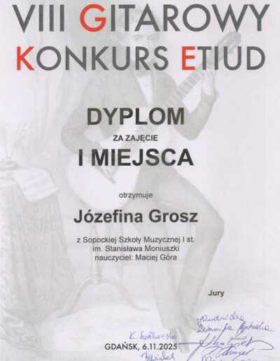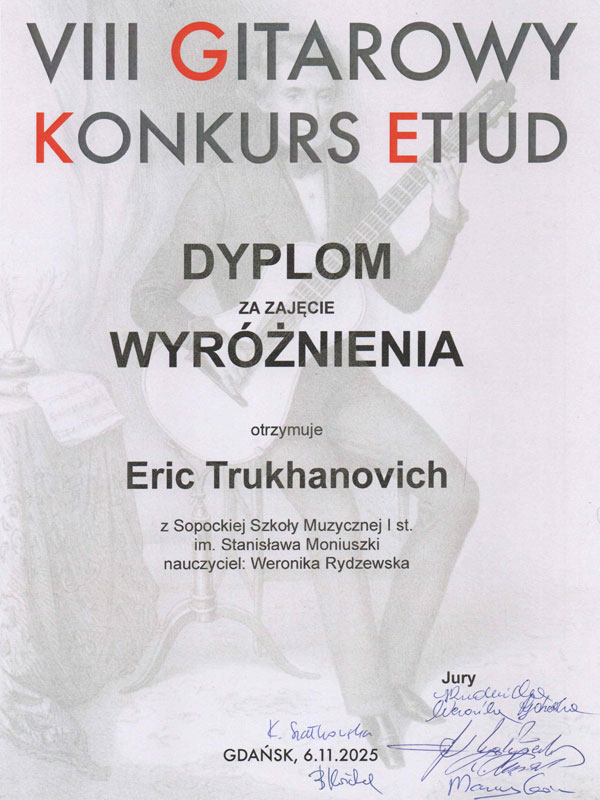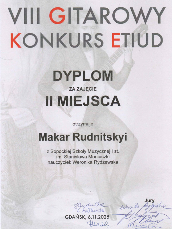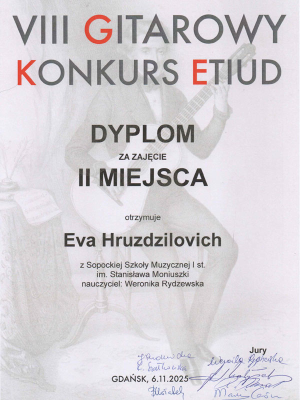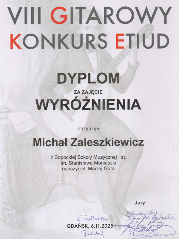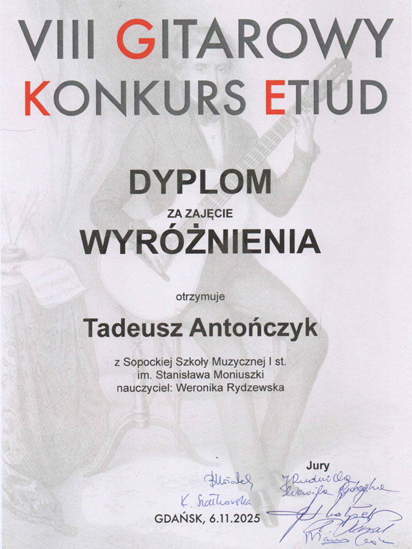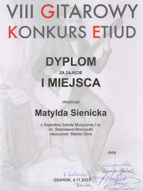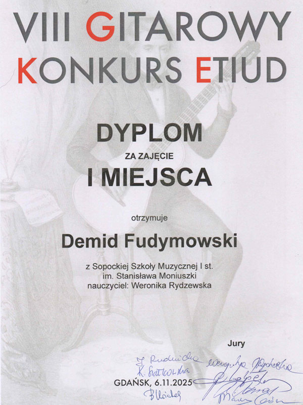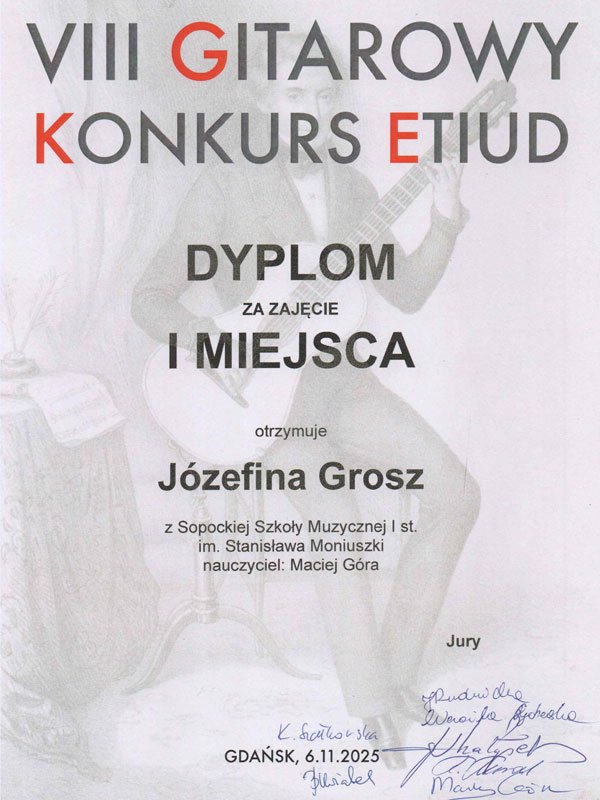 W dniu 6.11.2025 r. w OSM I i II stopnia im. F. Nowowiejskiego w Gdańsku odbył się VIII Gitarowy Konkurs Etiud.