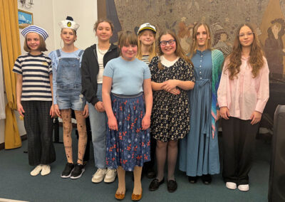 Oczekiwanie na werdykt jury umiliła dzieciom prelekcja poświęcona Zaślubinom Polski z Morzem – wydarzeniu, które ponad sto lat temu stało się symbolem powrotu Polski nad Bałtyk, wolności i odpowiedzialności za własną przyszłość. Pan Zbigniew Wilczyński – historyk, pedagog szkolny, harcerz, żeglarz, trener szachowy, jednym słowem „człowiek-orkiestra” poprzez quizy, w formie zabawy przybliżył uczniom tę ważną dla Polaków datę. Rozmawialiśmy jednak nie tylko o historii. Zastanawialiśmy się wspólnie, czym morze jest dzisiaj: